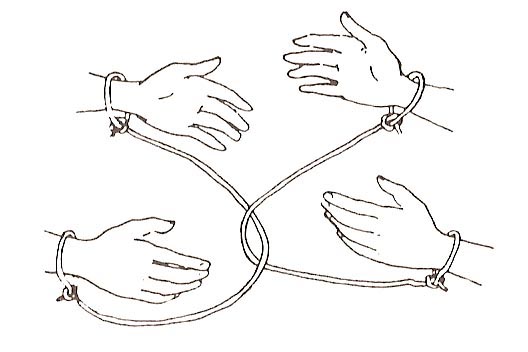 3 - با توجه به تصویر، چگونه می توان بدون باز کردن طناب یا بریدن آن، دو نفر می توانند از هم جدا شوند؟